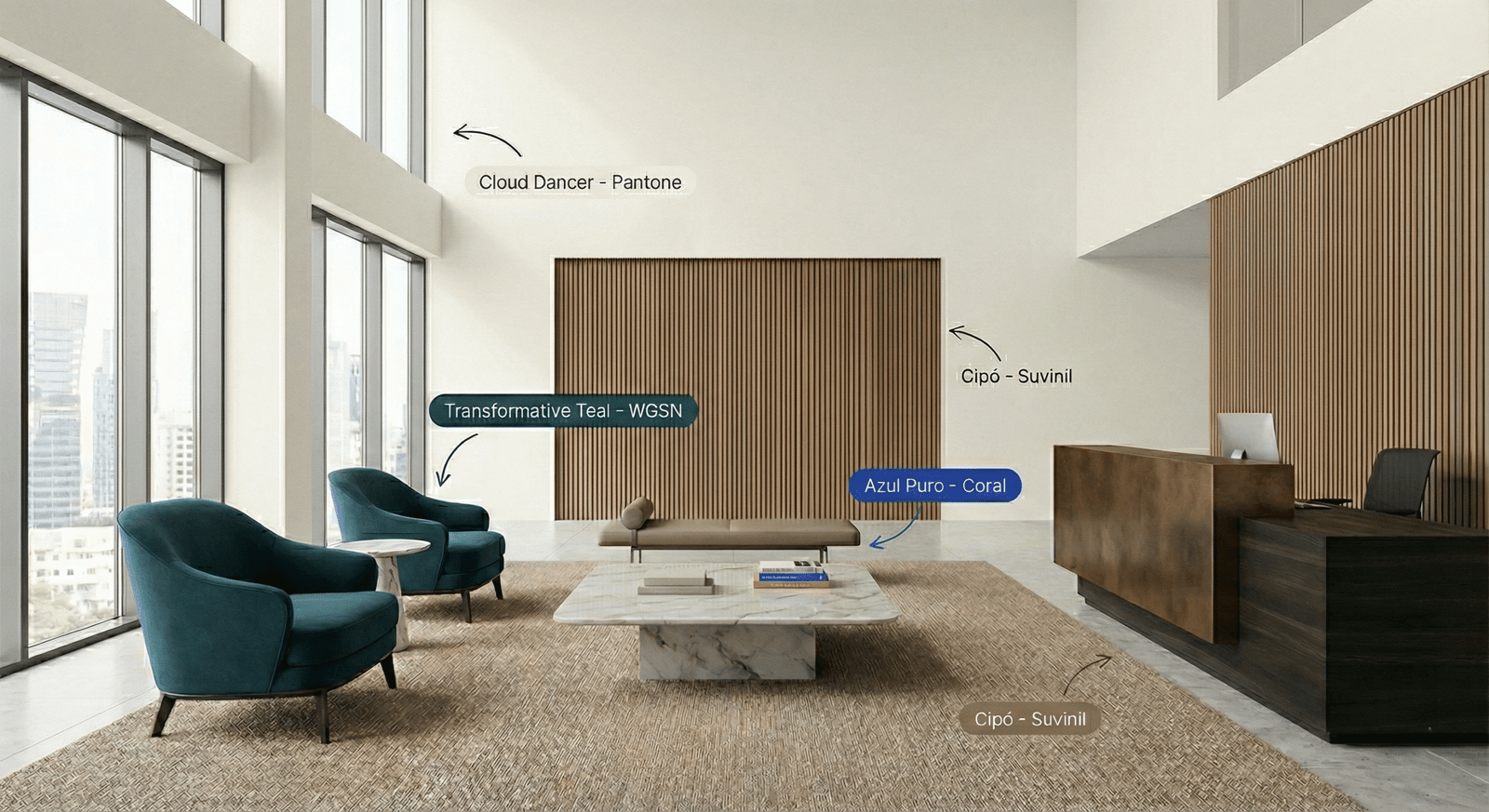 O perigo das tendências é usá-las sem critério. Uma obra corporativa é um ativo de longo prazo; ela não pode “sair de moda” no próximo ano. Nossa metodologia integra essas cores de forma inteligente. Usamos a neutralidade da Pantone para garantir longevidade, o acolhimento da Suvinil para garantir conforto e a ousadia da WGSN/Coral para garantir relevância.